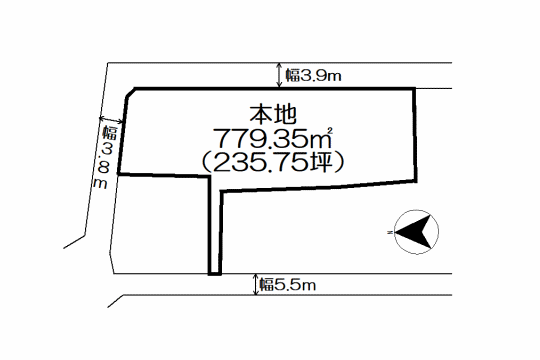 □現況でのお引渡しとなります。 □接道:北側3.8m、西側5.5m、東側3.9m