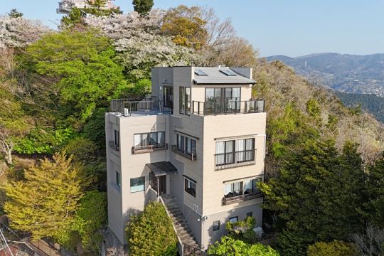 日常から離れた環境の中に佇む地下1階地上3階建てのサウナ付き物件。屋上からは四季折々の山々と相模湾が一望出来、特別な時間を提供してくれます。2階は全フロアをリビングとしており、ここだけで40帖以上の広さを誇ります。浴室は石畳仕様でまるで旅館に来たような気分と熱海市内の夜景を味わうことが出来ます。雑踏とした市街地を離れたこの場所で安らぎのひと時を過ごしてみてはいかがでしょうか。