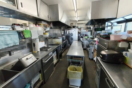 飲食店店舗及び居宅二世帯からなる一棟の賃貸物件。こちらは店舗+居住用スペース2LDKのお部屋です。1階の店舗部分は現在飲食店として盛業中。席数は26席、厨房設備も充実しており、そのまま飲食店として営業を始めることができます。また2階の居宅部分は2LDKで、ガス給湯器が店舗と共有の為、ご自身でお住まい頂くのはもちろん、従業員向けの住宅や休憩施設としてもご利用いただけます。