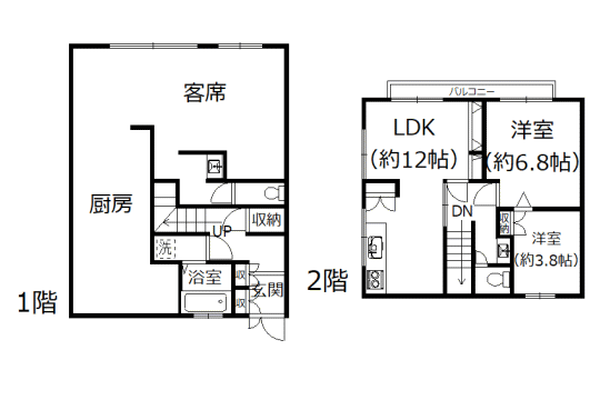 ◆間取り:2LDK(約75.00㎡)+店舗(約60㎡)