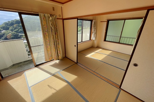 熱海市伊豆山エリアのアパートです。こちらは2階の2DK。街中の喧騒を離れ、静かに暮らしたい方におすすめしたい物件です。キッチン、シャワー室、トイレなど水回りも綺麗な状態です。駐車場も1台無料です。